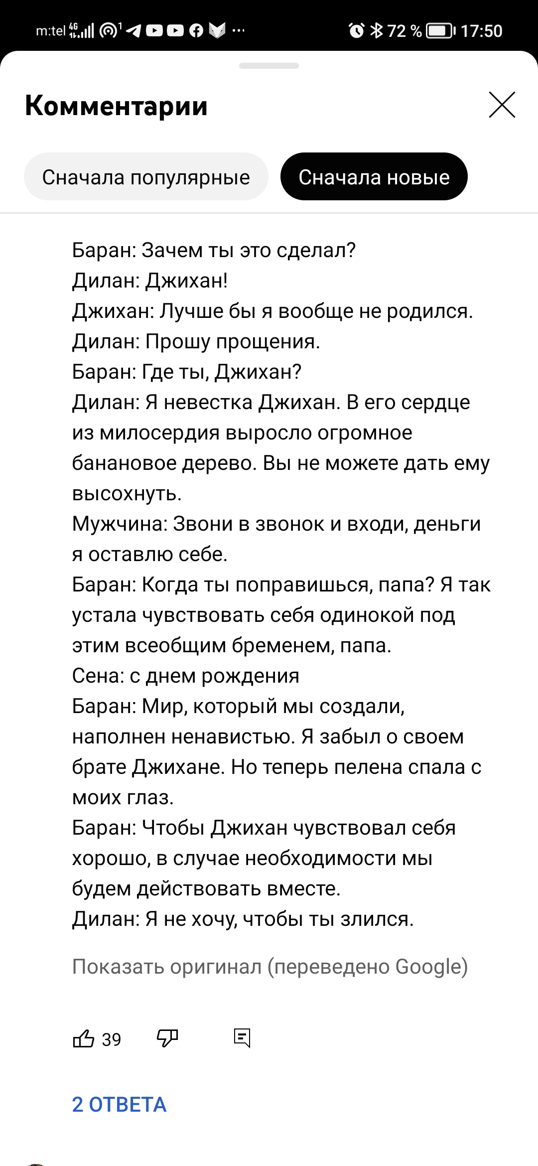 Я сегодня прослезилась и не один раз.Если бы Дилан рассказала про Азаде... имею ввиду падение в саду....как было бы справедливо!ведь действительно она больная и всё окружение хочет сделать убийцами!!! Дилан должна принципиально бороться теперь против зла и стать хозяйкой дома, стать настоящей госпожой семьи Карабей.