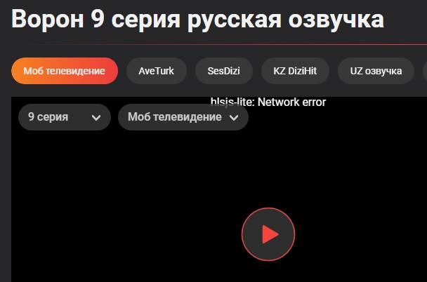 Остановилась на середине 8-ой серии, попробовала 9-ю. Пишет ошибка : network error